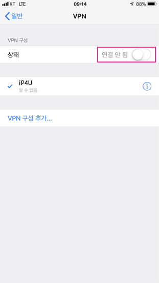 버튼을 클릭하면 상태에 ‘연결‘이 사라지고 VPN 연결이 끊어집니다.