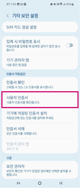[cn=lx root ca,o=lx,c=kr...] 선택