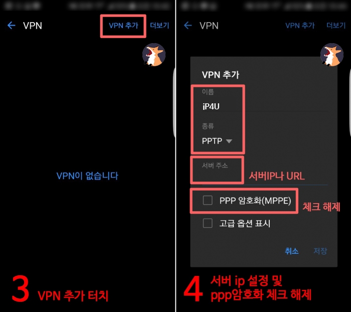 ◆ 안드로이드에서 iP4U VPN 설정하는 방법