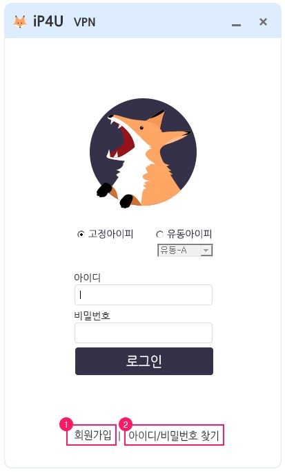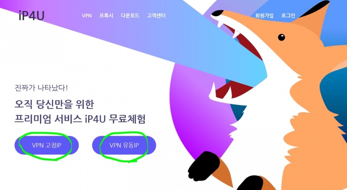 ① 메인페이지 상단 vpn 고정IP/유동IP 무료체험,